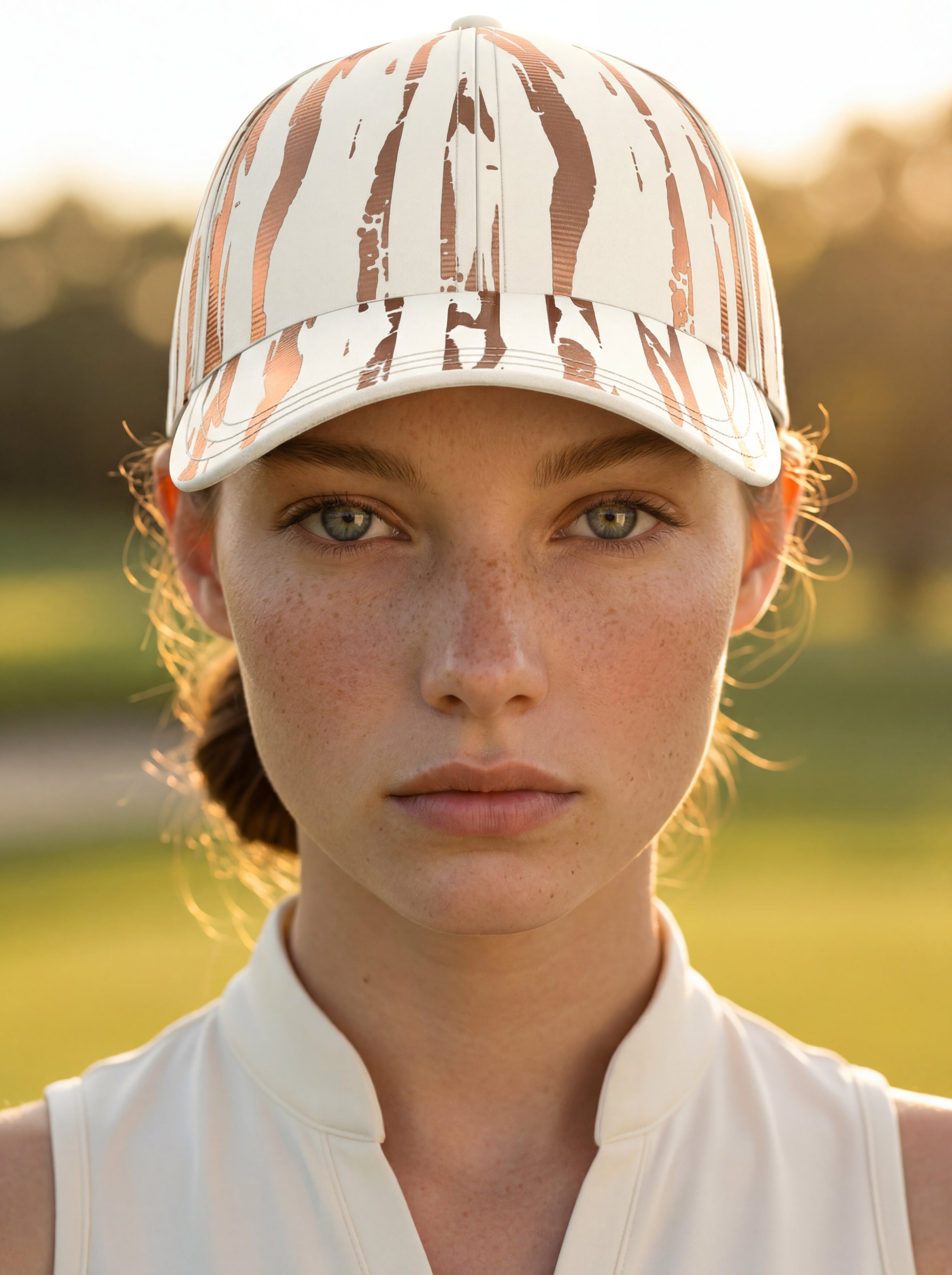 The Runway Golf Headwear In Pearl Copper Muse,Styled With Champagne